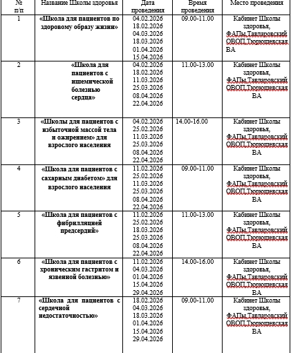 «Школы здоровья» проводятся в формате видеоконференций согласно установленному графику.